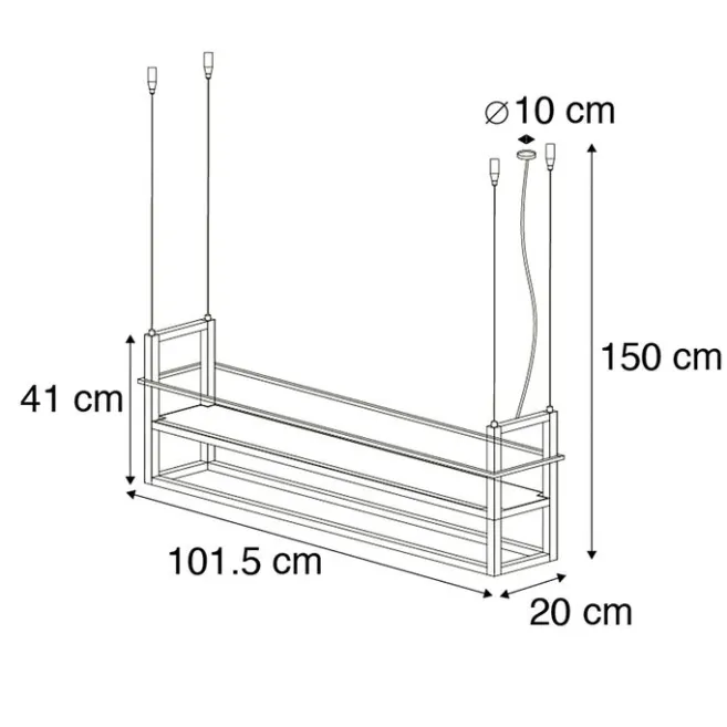 | Maße Lampenschirm | Höhe 41 cm – Länge 101,5 cm – Breite 20 cm |
